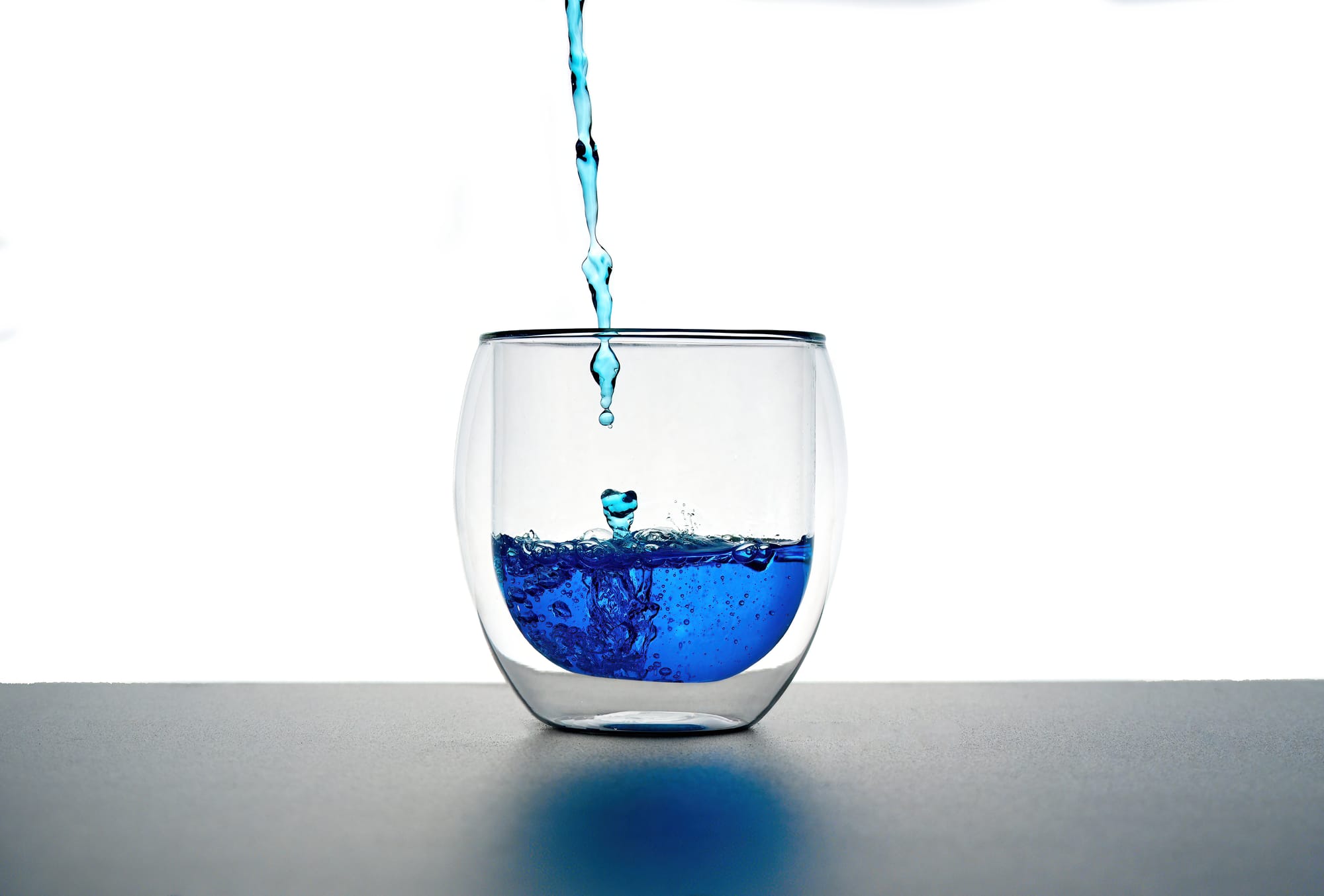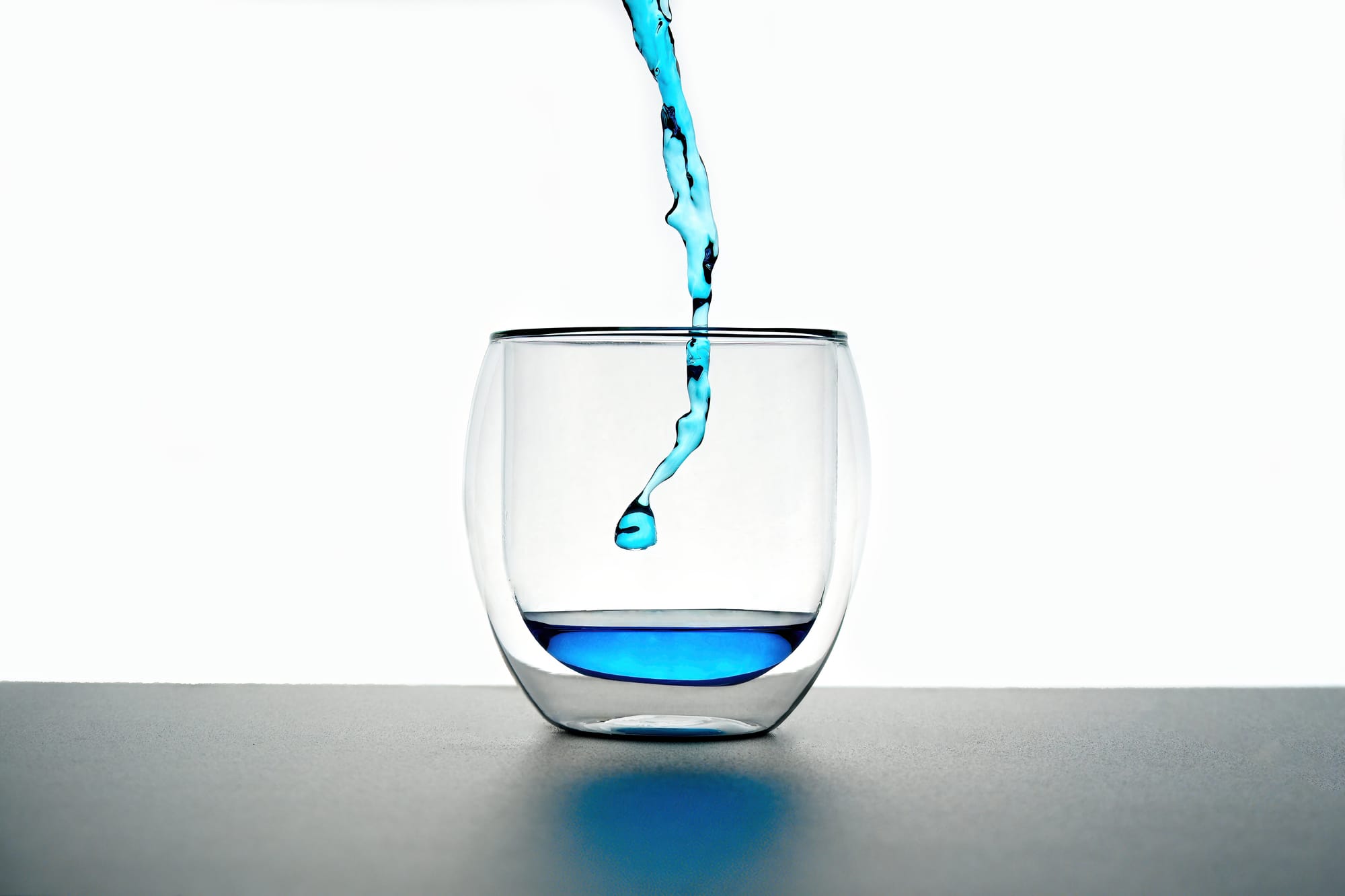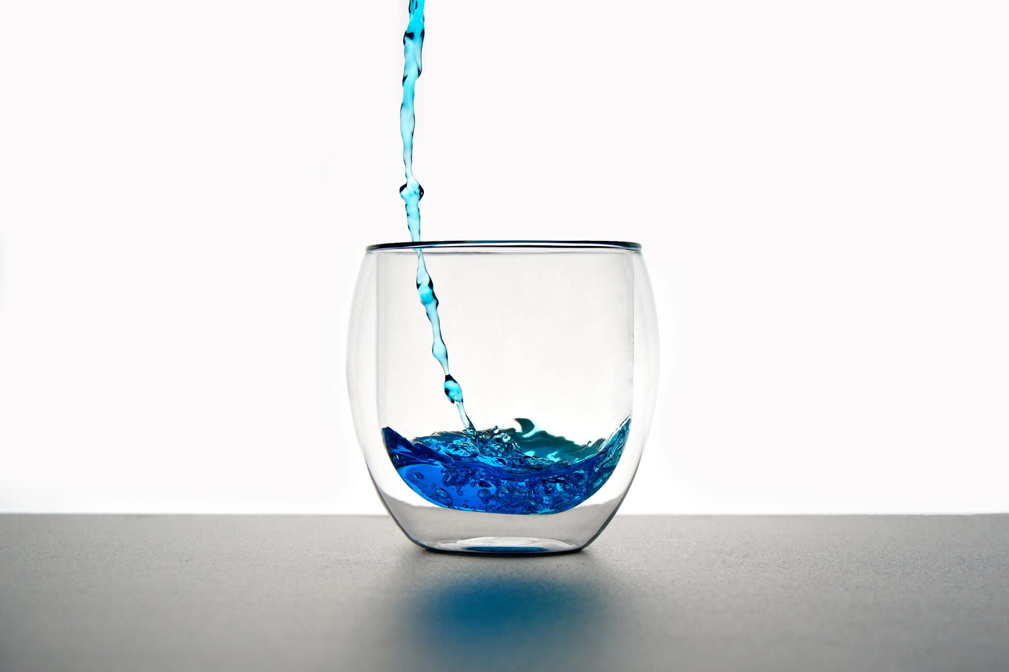 Das Titelbild ist entstanden, als ein Glas mit Wasser über den Requisiten in Stößen ausgekippt wurde. Die Gläser sind mit Wasser gefüllt, das seine bläuliche Färbung einigen Tropen Lebensmittelfarbe verdankt. Das Wasser, das ausgekippt wird, ist klares Wasser. Ich war mir nicht sicher wo ich das Wasser verteilen würde und im Wohnzimmer ...