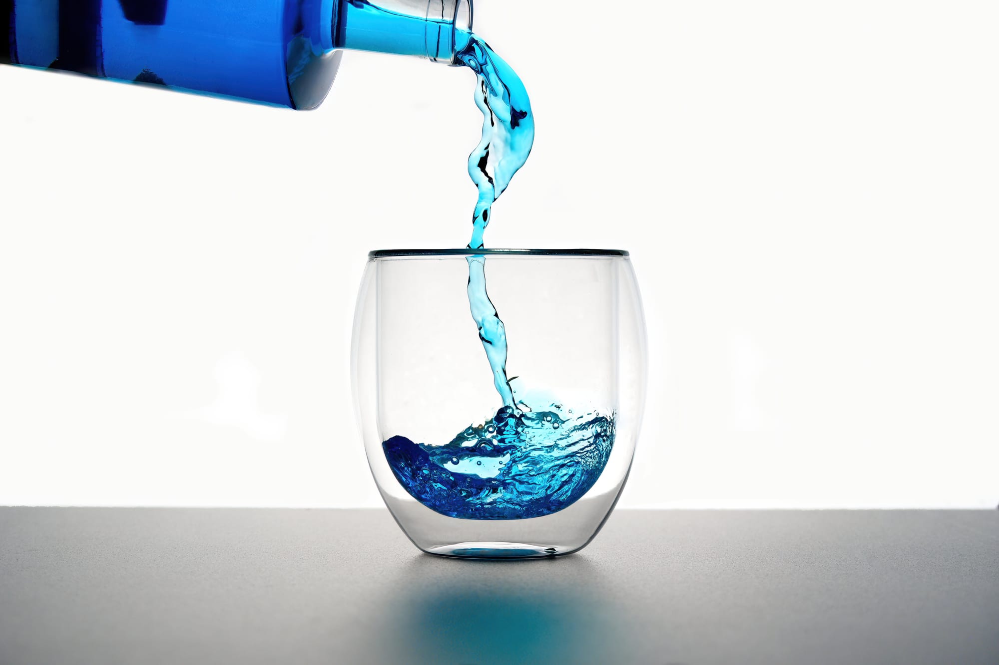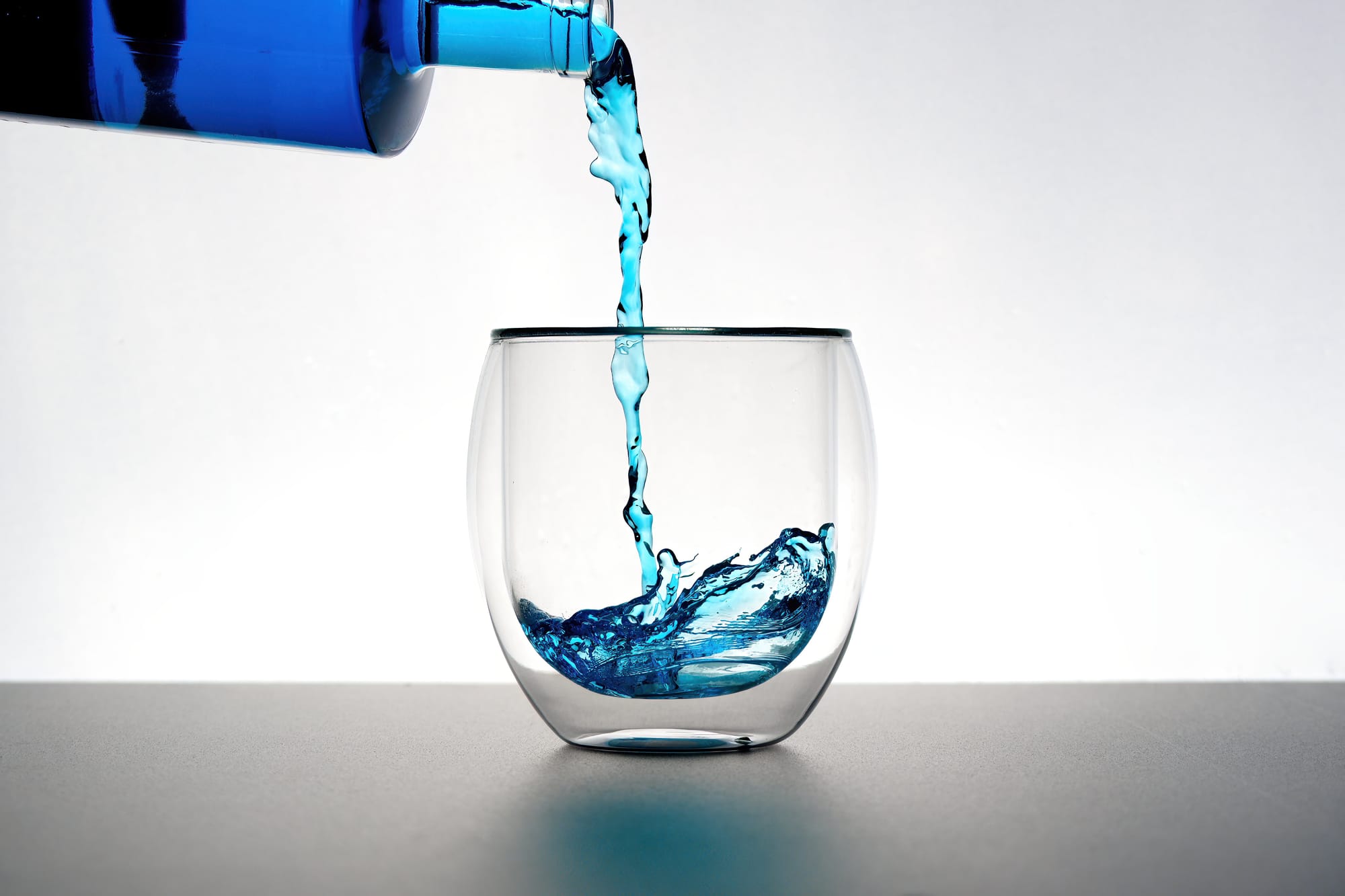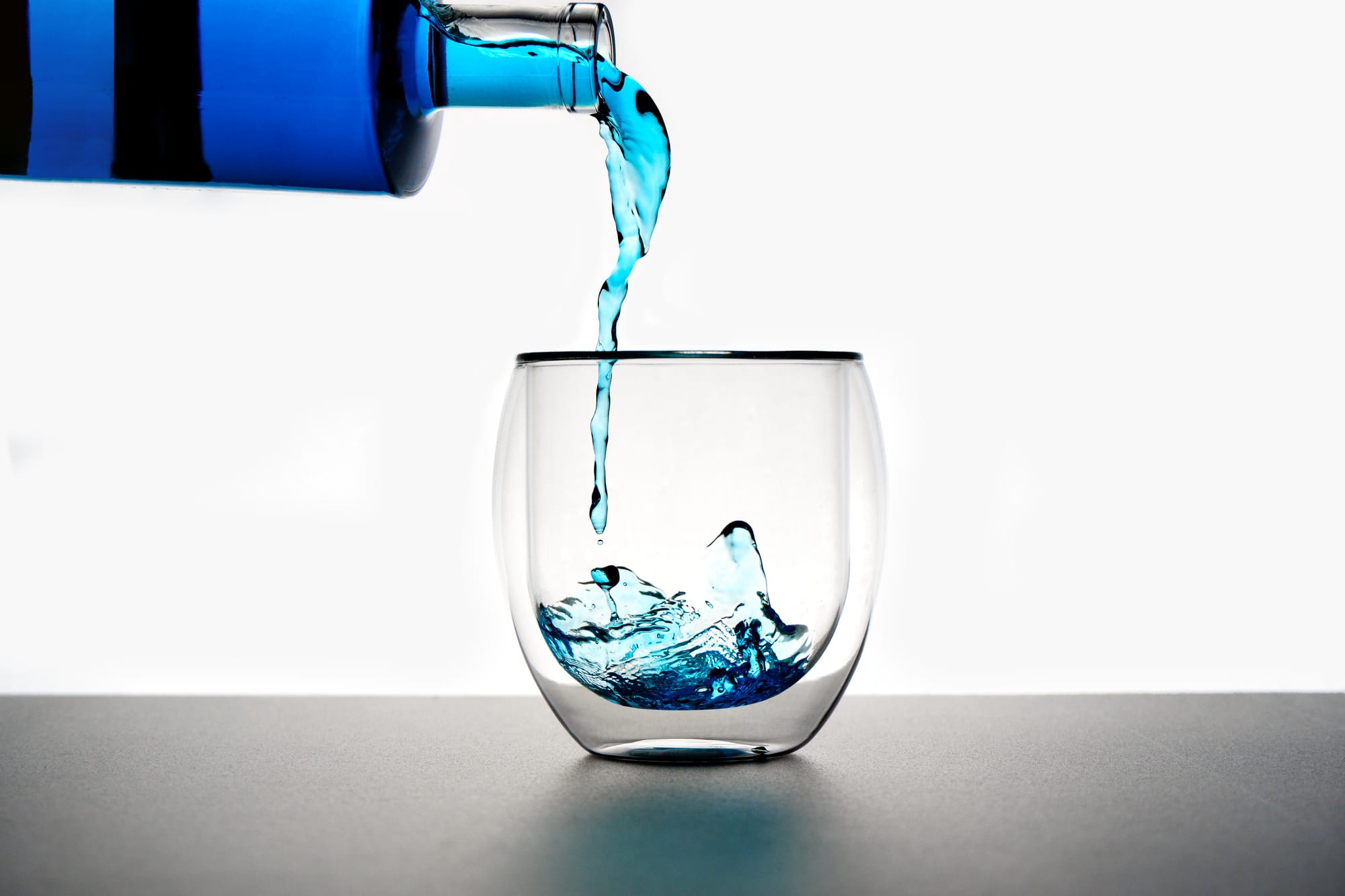 Das Titelbild ist entstanden, als ein Glas mit Wasser über den Requisiten in Stößen ausgekippt wurde. Die Gläser sind mit Wasser gefüllt, das seine bläuliche Färbung einigen Tropen Lebensmittelfarbe verdankt. Das Wasser, das ausgekippt wird, ist klares Wasser. Ich war mir nicht sicher wo ich das Wasser verteilen würde und im Wohnzimmer ...